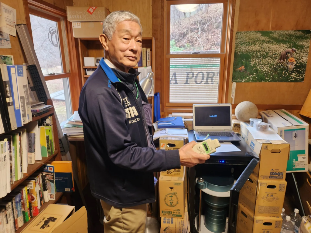 Junko ed io percorriamo un’altra stretta valle per incontrare Nobuyoshi Ito, conosciuto localmente come “il fanatico delle misurazioni”. Ito gira per Iitate e sulle colline circostanti indossando un giubbotto pieno di rilevatori di radiazioni. La camera da letto della sua casa ospita due spettrometri professionali importati dall’Ucraina. Ito pubblica un blog e testa regolarmente tutti i frutti selvatici e le bacche che un tempo venivano raccolti qui in abbondanza.