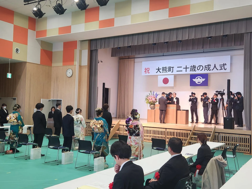 Ogni anno, a gennaio, il Giorno della Maggiore Età, una festa nazionale in Giappone, celebra i ragazzi che compiono 20 anni e diventano cittadini a pieno titolo. Quest’anno, Okuma ha tenuto la sua cerimonia un sabato pomeriggio. L’evento somigliava a una cerimonia di diploma scolastico, ma era più solenne. Le ragazze indossavano eleganti kimono furisode con elaborati fiocchi. Anche i ragazzi in Giappone a volte vestono abiti tradizionali come gli hakama e giacche corte, ma a Okuma portavano abiti neri con cravatta. Dieci giovani raggiungevano la maggiore età: cinque ragazzi e cinque ragazze. La cerimonia si è svolta in un auditorium percorso da lunghe file di politici e funzionari locali seduti. Si sono susseguiti molti inchini e numerosi discorsi, nessuno dei quali pronunciato dai giovani festeggiati.
